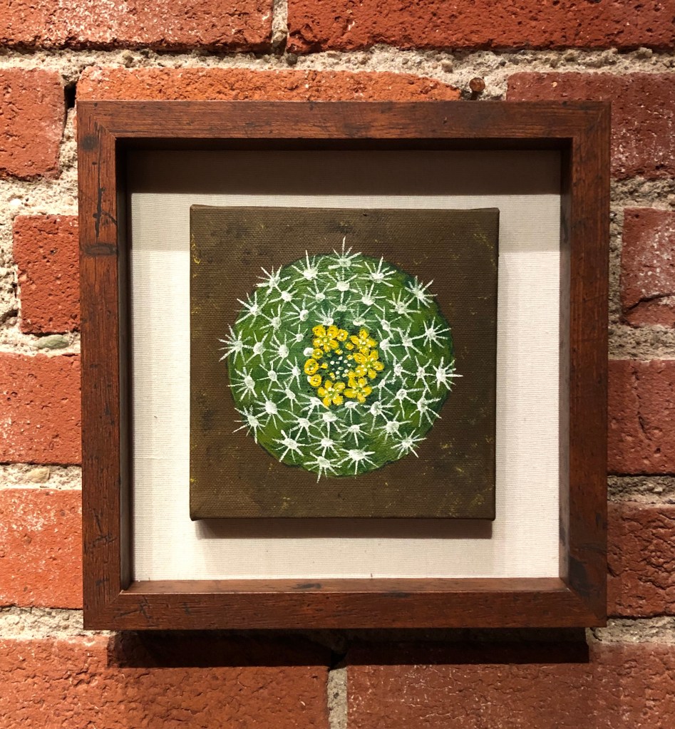 Above: Succulent and Cacti series – all oil on canvas (6″ x 6″ framed in 10″ x 10″ wood frames). All have SOLD.